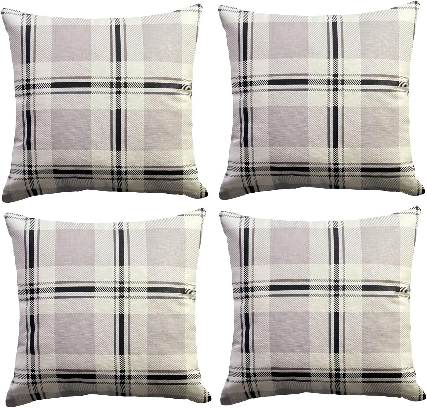 Cushion Cover Pack of 4 Natural Check Cushion 100% Cotton